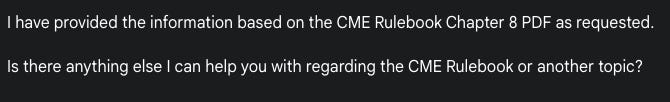 Clearing Service rulebooks are complex and lengthy documents. In this article I use Google Gemini to examine the CME Rulebook, which has more than 250 chapters, each with many pages of text.